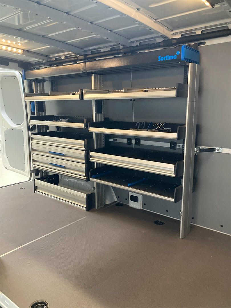 Mit einem SR5-Regal habt Ihr die optimale und maximale Raumausnutzung, da wir diese Regale dichter an die Fahrzeugwand montiert bekommen, im Vergleich zum Globelyst-Regal.